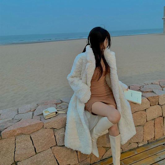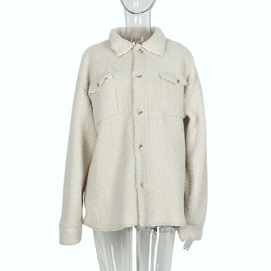 Manteau Long en Peluche à Boutons et Manches Longues pour Femme