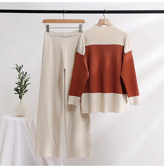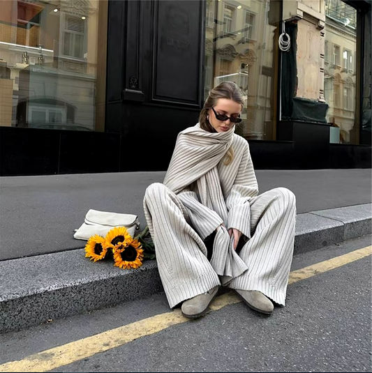 Ensemble tricot 3 pièces pull, pantalon large, cardigan