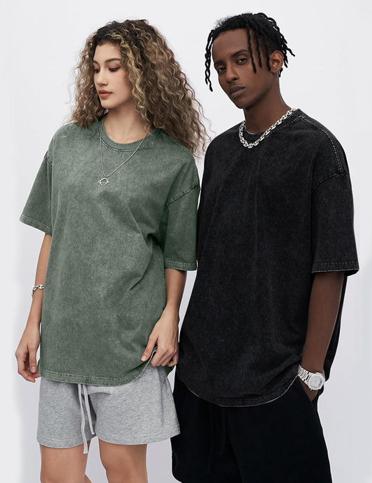 T-shirt effet vieilli pur coton rétro col rond manches courtes