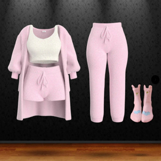 Ensemble Confort Luxe : Cardigan, Brassière, Short, Pantalon et Chaussettes (5 pièces)